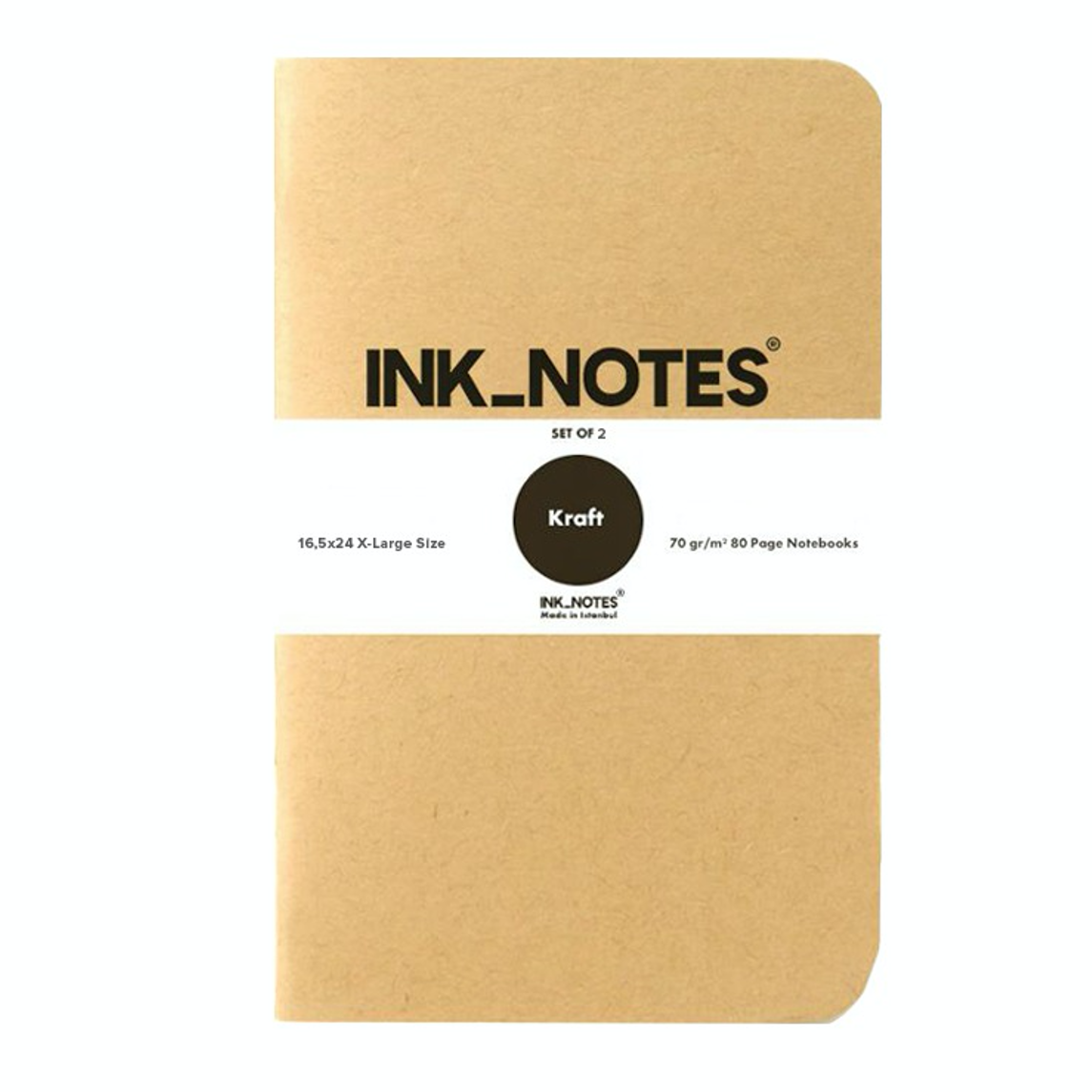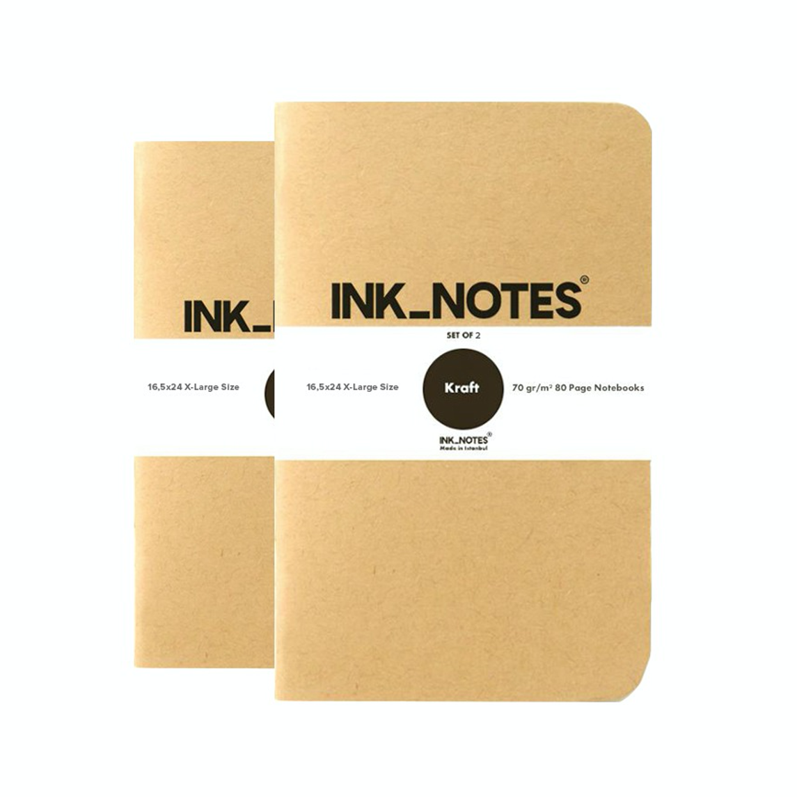 İnk Notes Karton Kapak 2'Li Set X-Large Size Kraft Kareli Not Defteri