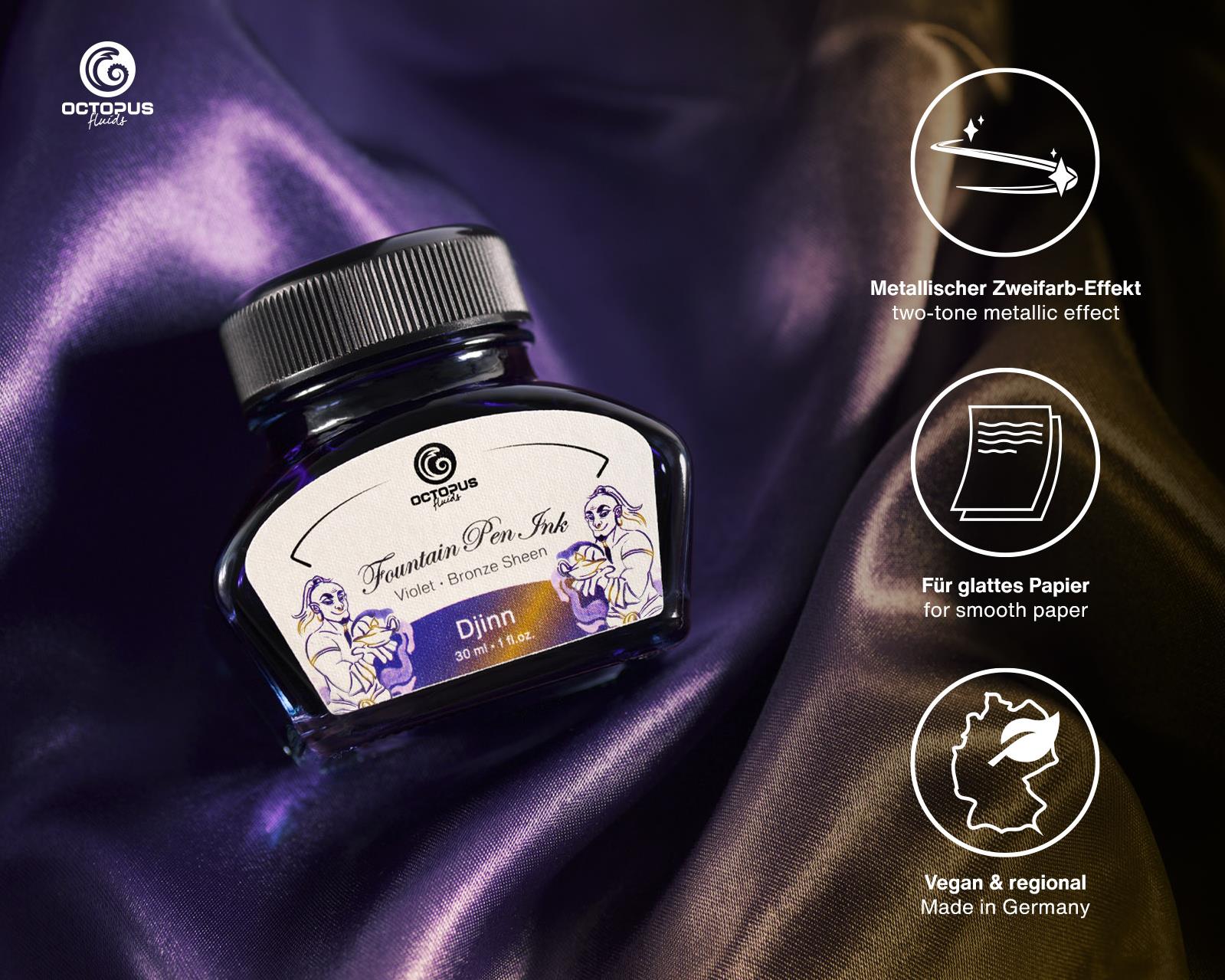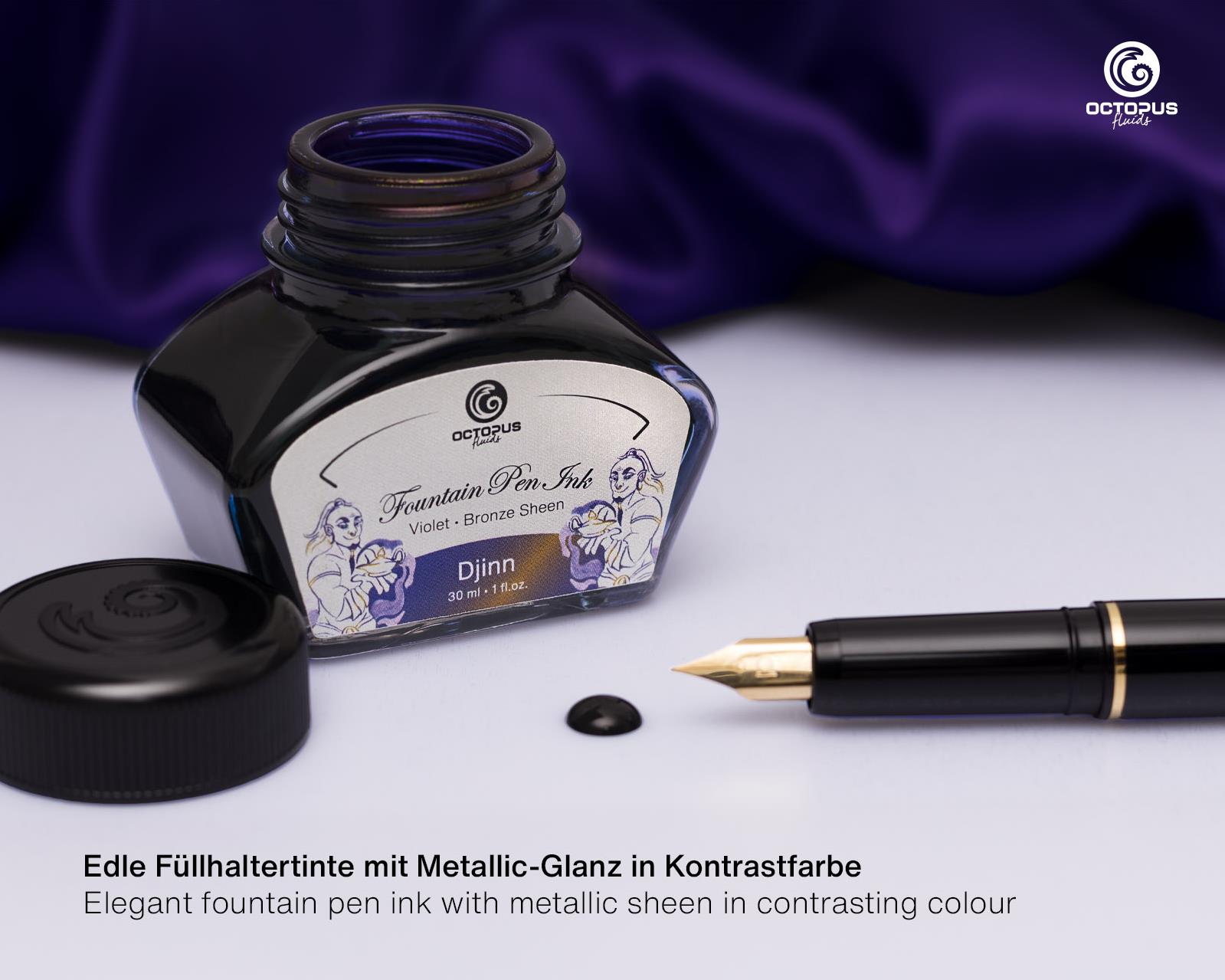 Bir sürü mürekkep deniyorum Djinn top 3 içinde. Renk tonları şahane. Revnak çok fazla. Japon kağıtlarda (Tsubame, Midori) daha da üst seviyeye çıkıyor. Kağıtları zorlayan bir mürekkep, her kağıtta aynı perf olmuyor, çoğu kaldıramıyor arkaya geçiriyor ama kanama yapıyor. Ancak doğru kağıtta sayfalarca yazmak istiyor insan